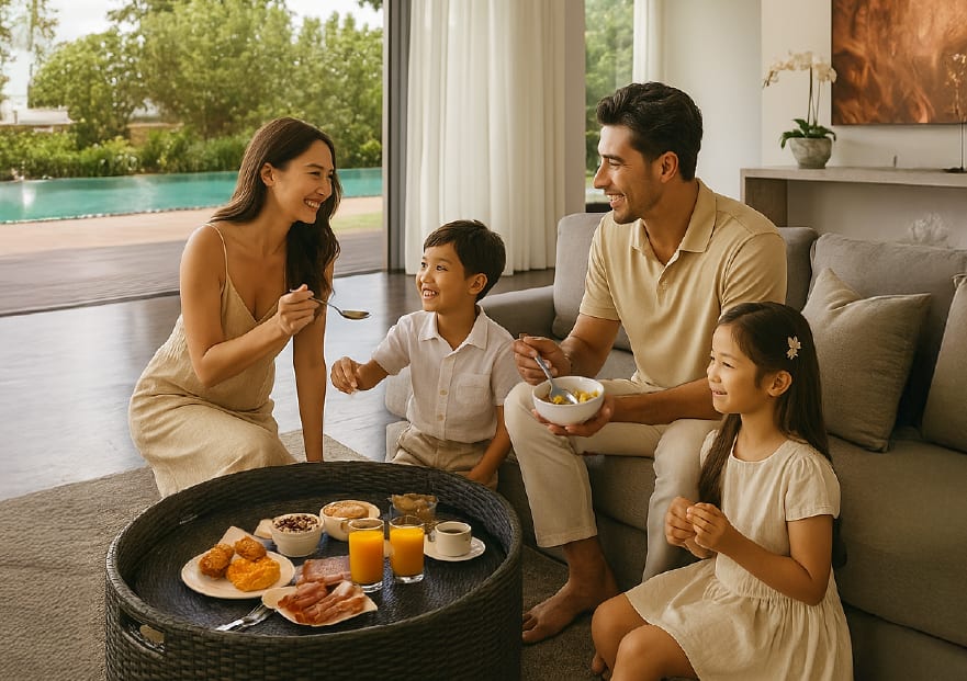 Choose from one- and two-bedroom private abodes with lagoon views and private plunge pools, dotted across landscaped gardens. Enjoy absolute comfort with a separate master bedroom and an airy, light-filled living room infused with traditional Malaysian design touches.